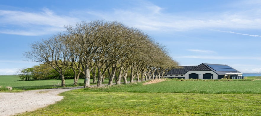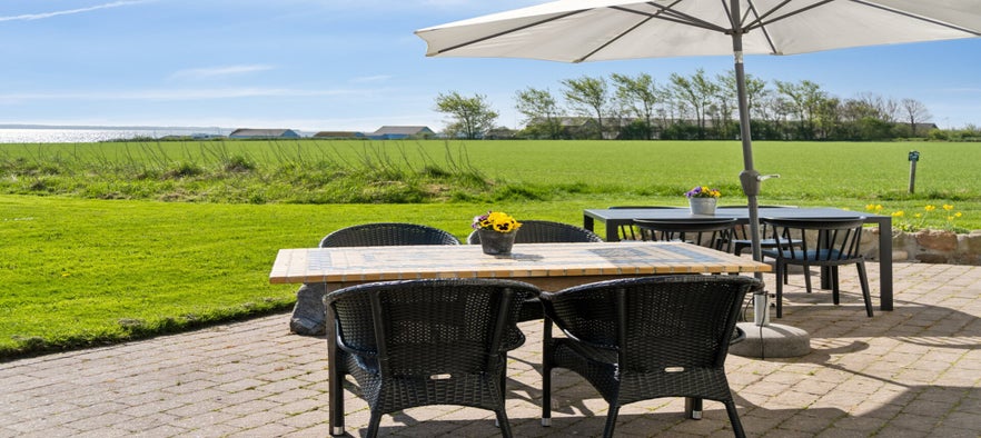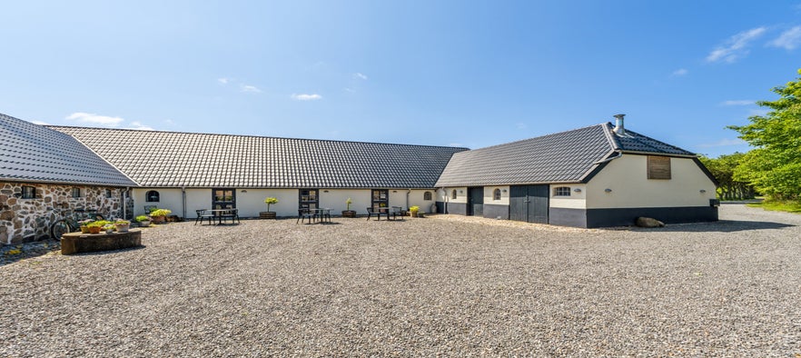 The farm is 200 meters from the Limfjord, so you have a beautiful view of the fjord from the two terraces by the rooms and the large shared terrace.